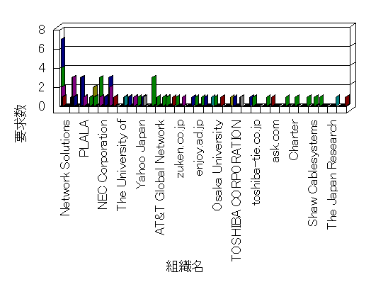 組織ユーザーにインターネット接続を提供する、商用または非営利団体、学術・行政機関などの、インターネット ドメイン で識別される団体や組織です。Microsoft Site Server Analysis は同じ組織に登録されたすべてのドメインを 1 つの組織としてグループ化します。ドメインがデータベースで使用できない場合は、1 つのインターネット ドメインが 1 つの組織を識別するのに使用されます。