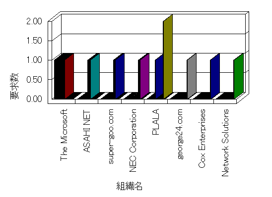 組織ユーザーにインターネット接続を提供する、商用または非営利団体、学術・行政機関などの、インターネット ドメイン で識別される団体や組織です。Microsoft Site Server Analysis は同じ組織に登録されたすべてのドメインを 1 つの組織としてグループ化します。ドメインがデータベースで使用できない場合は、1 つのインターネット ドメインが 1 つの組織を識別するのに使用されます。