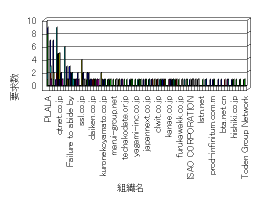 参照組織のサイトには、このサイトにリンクするページがあります。グラフでは、このサイトへのアクセス数に基づいた、上位 10 組織を示します。