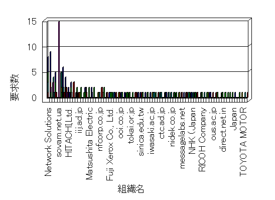 組織ユーザーにインターネット接続を提供する、商用または非営利団体、学術・行政機関などの、インターネット ドメイン で識別される団体や組織です。Microsoft Site Server Analysis は同じ組織に登録されたすべてのドメインを 1 つの組織としてグループ化します。ドメインがデータベースで使用できない場合は、1 つのインターネット ドメインが 1 つの組織を識別するのに使用されます。