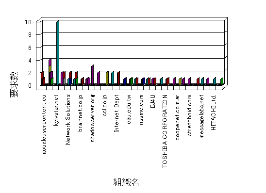 参照組織のサイトには、このサイトにリンクするページがあります。グラフでは、このサイトへのアクセス数に基づいた、上位 10 組織を示します。